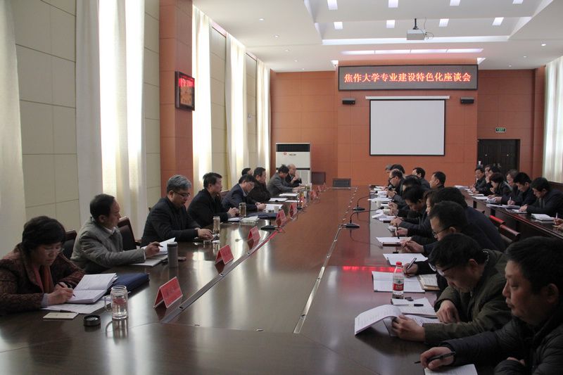 为做好专业建设,办出特色,提高人才培养质量,2016年3月2日下午,学校在南校区行政楼201会议室召开了专业建设特色化座谈会。学校领导班子全体成员、各教学院部院长、主管教学工作的副院长、办公室、教务处、人事处、科研处、学生处、招就办、财务处、国资处等职能部门以及教务处副科级以上干部和各教学院部教学办主任参加了会议。会议由副校长马韵新同志主持。