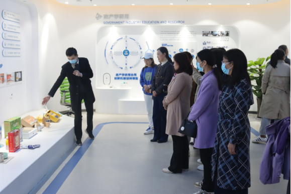 考察团首先参观了中原工业设计城。在设计城工作人员的带领下,各位老师参观了展厅。展厅内的迷你加湿器、干衣架、有门的浴缸、智能魔方、可升降橱柜、3D仿真教学、无人图书馆等各类创新产品尽显工业设计之美,深受大家青睐。