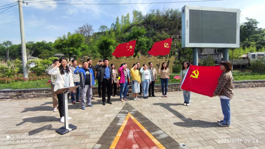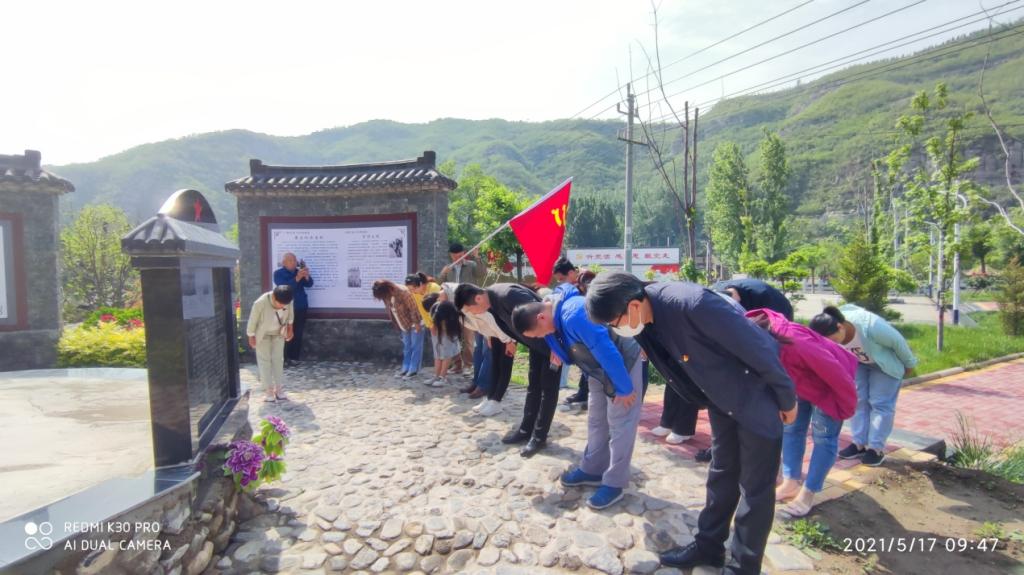 在博爱县许湾村红色教育基地,讲解员认真讲解了1943年,中共沁博县委派年仅22岁的共产党员、八路军战士李荫棠来到丹河峡谷许湾村,在这里开展革命工作。李荫棠一方面宣传革命道理,发动山区群众组建抗日武装,打击日寇,为八路军开辟了丹河通道。另一方面开展土改运动,带领村民修建转山石渠,让旱地变良田,造福于民。随后全体党员到李荫棠烈士的墓地深切的悼念革命先烈,在广场重温入党誓词,最后怀着热切的心情颂唱了一支红色歌曲。