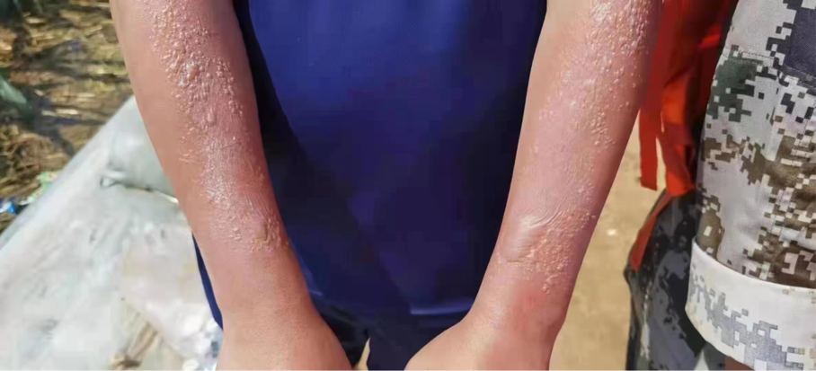 20级播音二班吴沂霖,自己家虽然没有受灾,但依然冲在一线抗洪,扛沙袋,搬物资,保卫家乡浚县。由于搬运时间过长,导致胳膊晒出了很多水泡,但他依然积极投身在抗洪救灾当中,为夺取抗洪救灾工作的全面胜利贡献自己最大的力量。