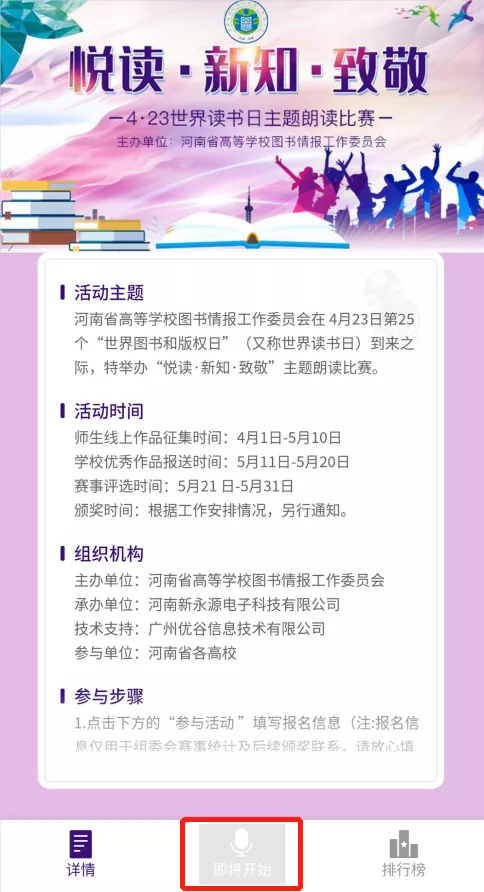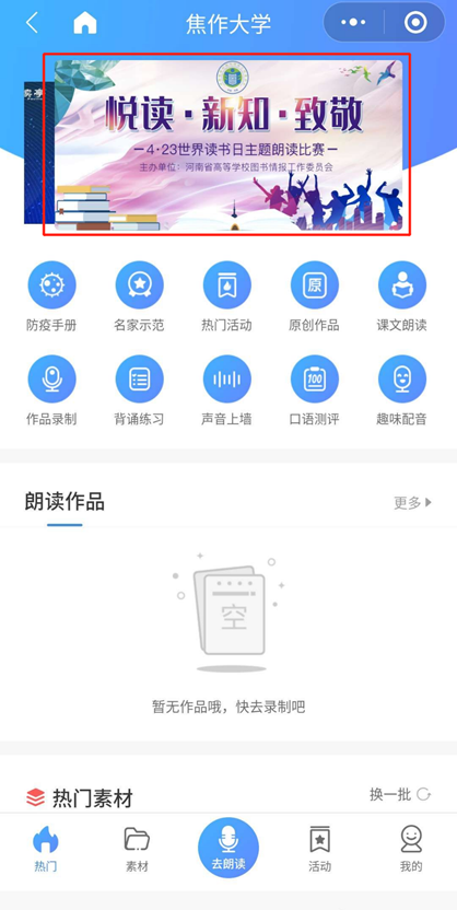 ②点击活动页面下方的【立即朗读】,进入录制作品。