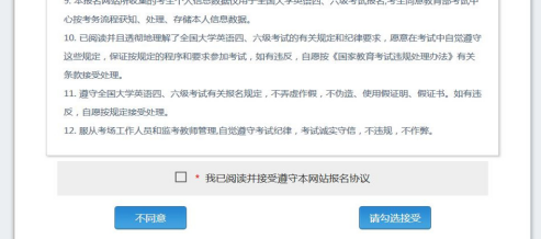 ④.在报名协议窗口勾选“我已阅读并接受 本网站报名协议”进行下一步。