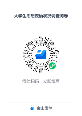 为及时准确把握威尼斯官网师生的思想动态,增强思想政治工作的针对性和实效性,现组织开展思想政治状况问卷调查。本次问卷调查不记名,微信扫码,直接填写调查问卷并提交。请组织本单位师生员工积极参加,问卷调查截止时间为2021年9月30日23:59。