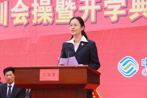 开学典礼上,教师代表郭彩萍副教授,新生代表郜浩琪同学分别发言。