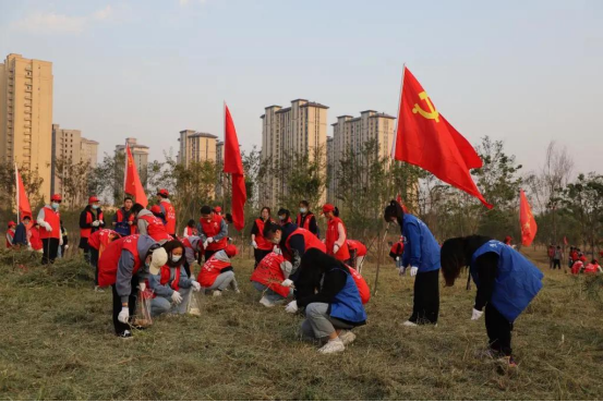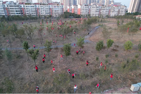 活动中,志愿者们和各学生组织成员统一佩戴团徽和印有相关标识的帽子,按照分组,在游园的各个角落认真劳动:捡碎石杂物、清除枯枝杂草、搬运建筑垃圾……同学们分工合作、有条不紊,不畏寒风,个个干得热火朝天。共青林里飘动的红旗和流动的小红帽成了校园里一道美丽的风景线。