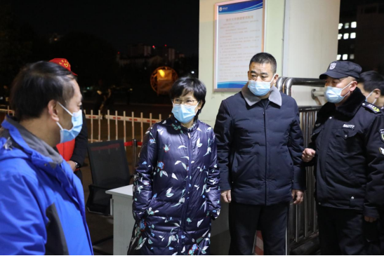 11月23日,校长霍晓丽在副校长吴玉伦的陪同下,带领党政办公室、后勤基建处、保卫处、学生处等部门相关人员,深入南校区食堂、北门岗和宿舍楼,实地检查了防疫物资储备、人员在岗和工作预案准备情况。